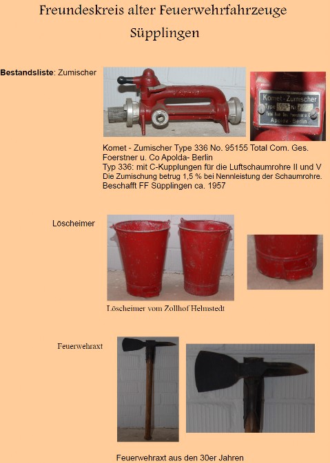 Geräte - Freundeskreis alter Feuerwehrfahrzeuge Suepplingen